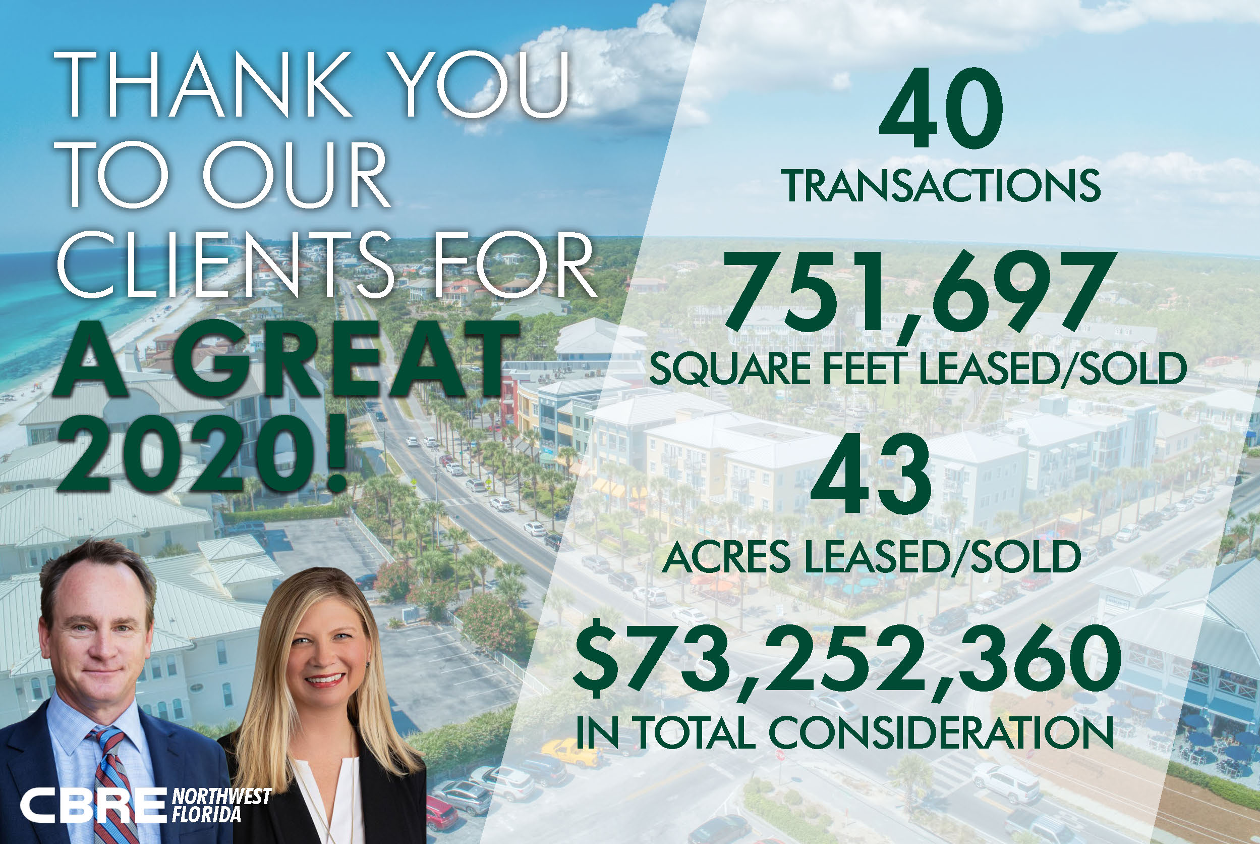 Social Media post for CBRE Panhandle team, Top Producers of 2020.